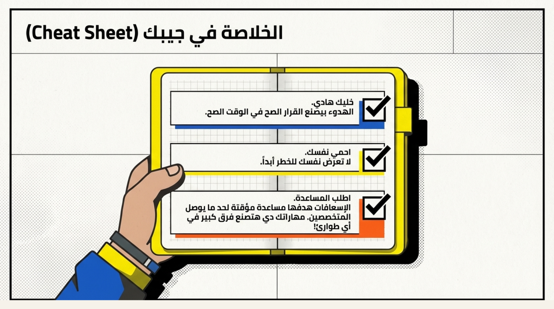 دي مهارات بسيطة ممكن أي مراهق يتعلمها، لكنها ممكن تعمل فرق كبير في لحظة مهمة.