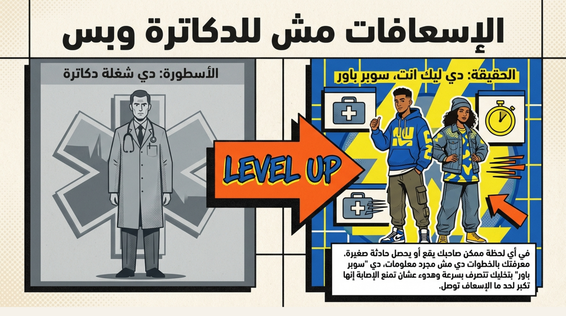 الإسعافات الأولية مش حاجة معقدة ولا محتاجة تكون دكتور.